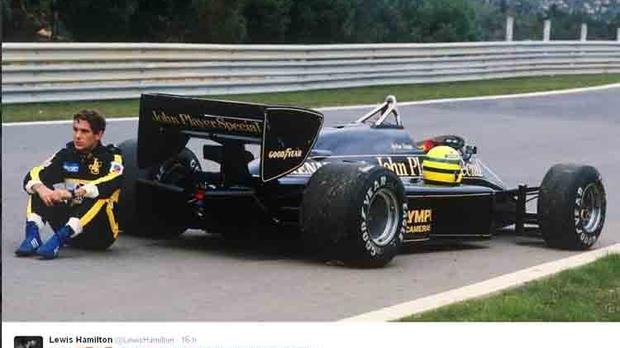 Hamilton postou uma foto de Senna sentado atrás de sua Lotus, equipe que defendeu de 1985 a 1987, acompanhando as palavras “ídolo” e “o maior”.
