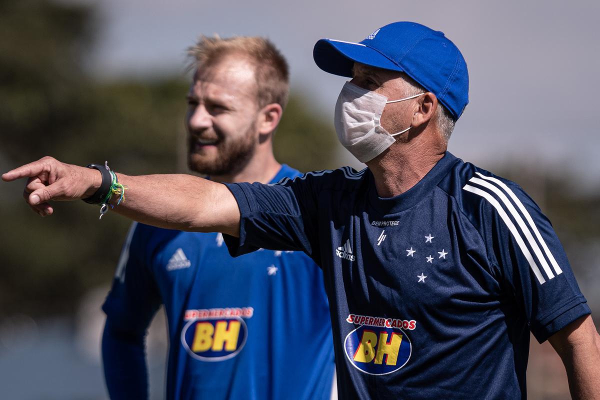 Na segunda semana de treinos desde que retornou à Toca da Raposa II em meio à pandemia de coronavírus, o grupo de jogadores do Cruzeiro realizou um trabalho com bola nesta terça-feira. Após o trabalho físico orientado pelo preparador Edy Carlos, Enderson Moreira e sua comissão comandaram atividade de ‘movimentos de jogo’.