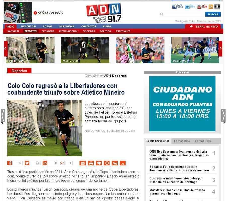 Repercussão na imprensa chilena da derrota do Atlético para o Colo Colo