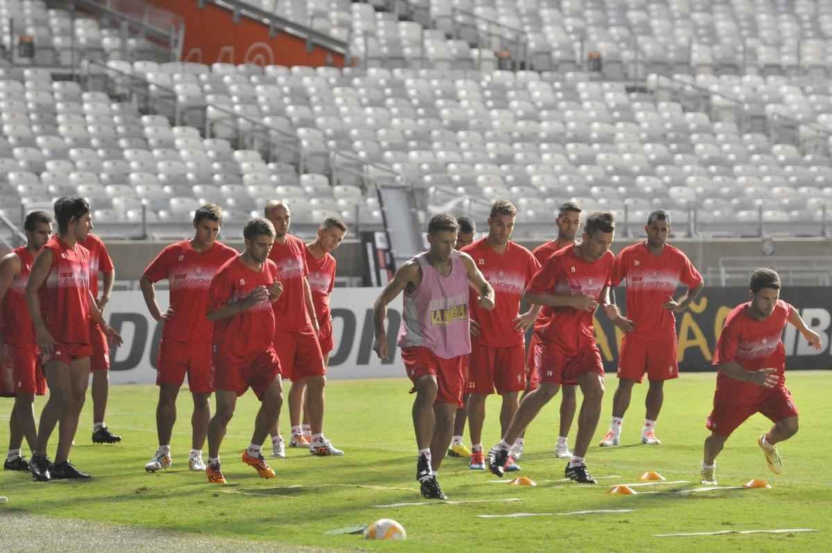 Imagens do treino do Huracán no Mineirão, nesta segunda-feira
