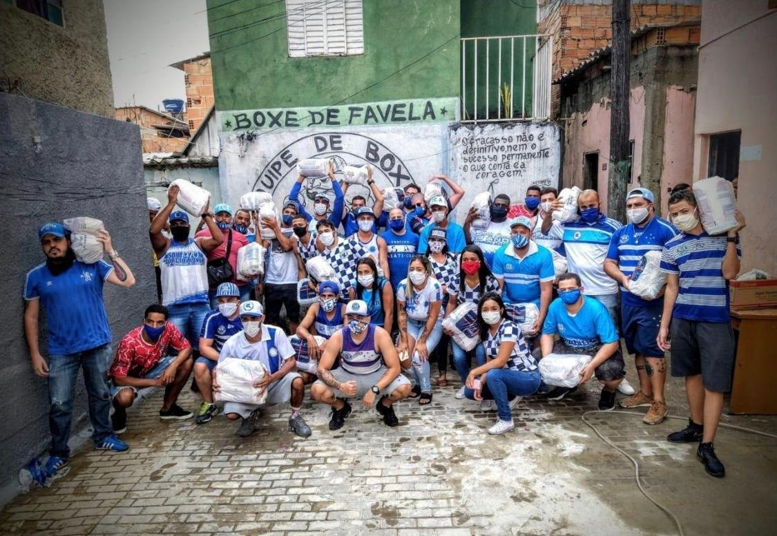 Torcidas organizadas e zagueiro Leo distribuem cestas básicas em comunidade de Belo Horizonte