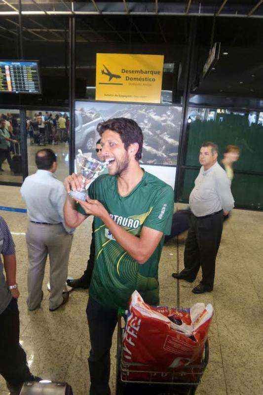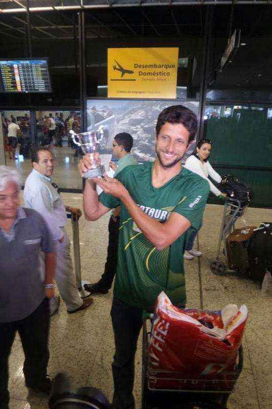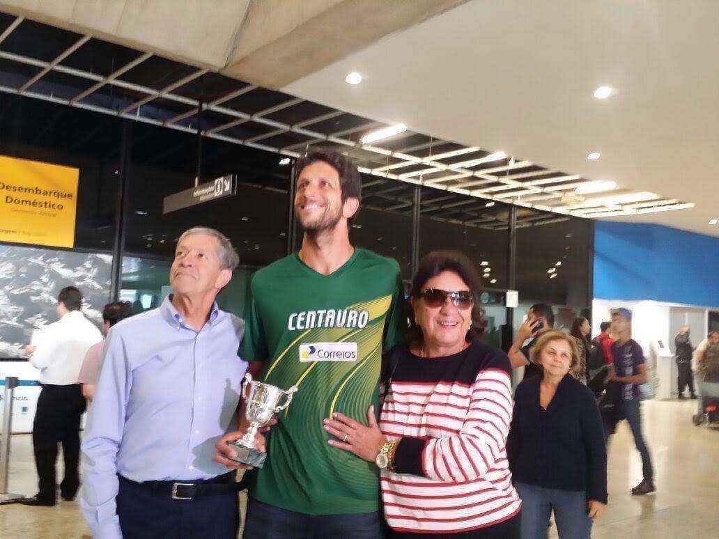 Jogador foi recebido e muito festejado por seus familiares e amigos no aeroporto de Confins