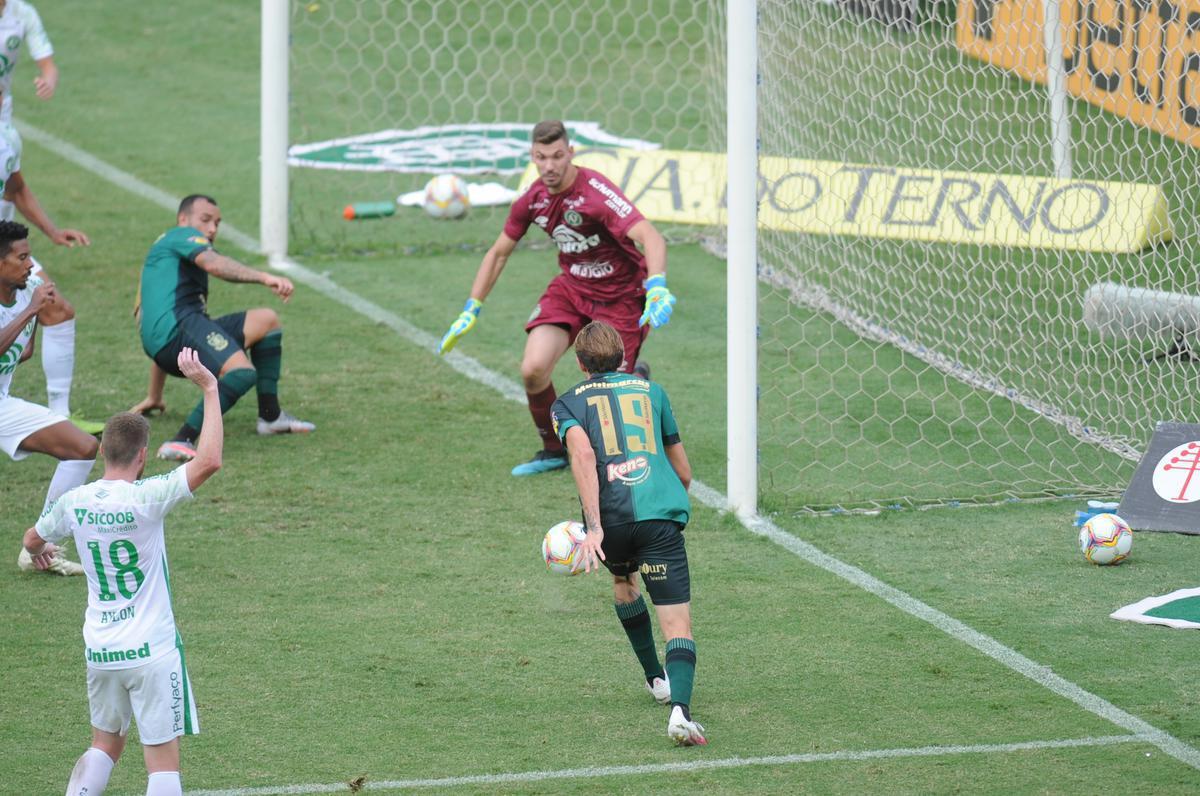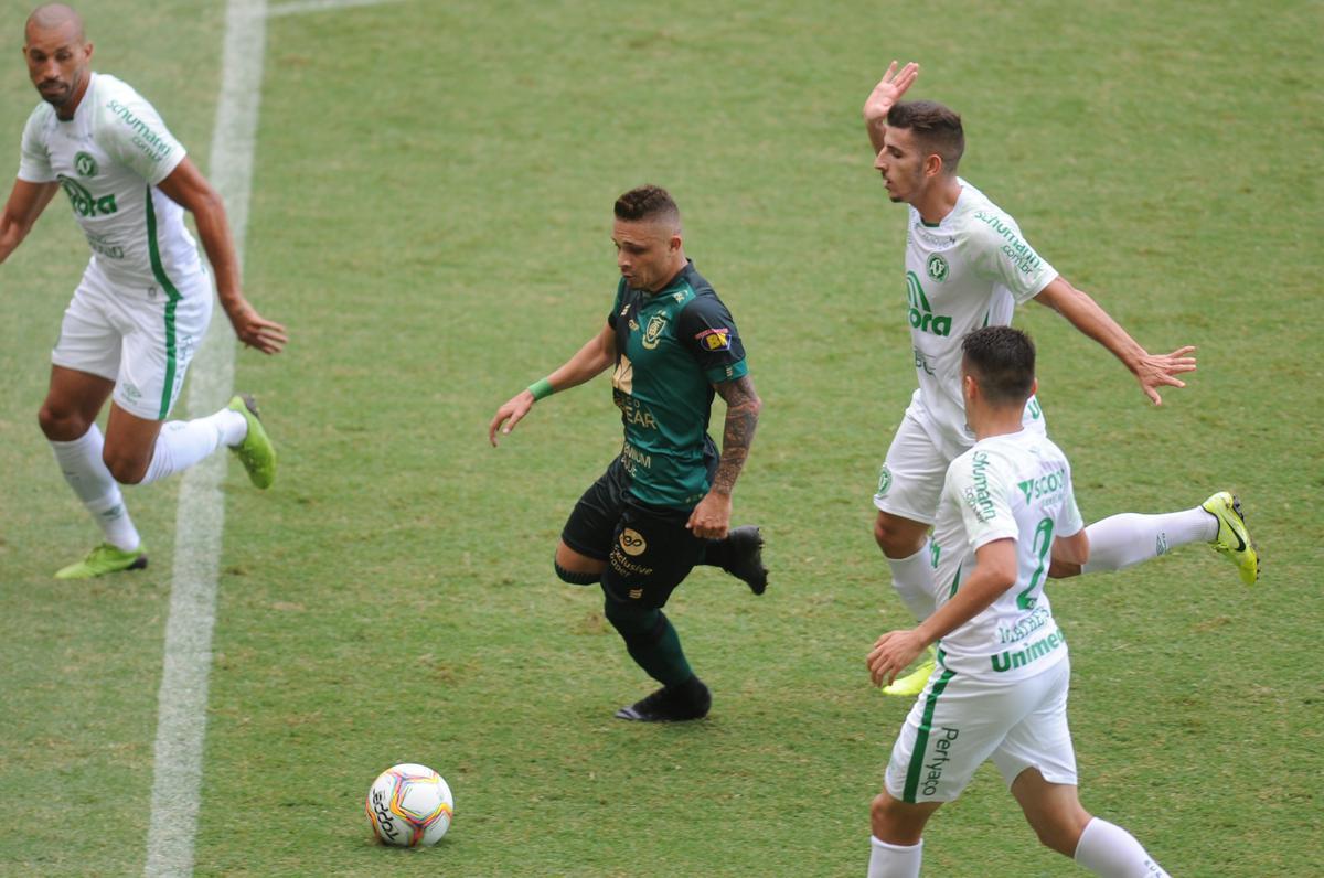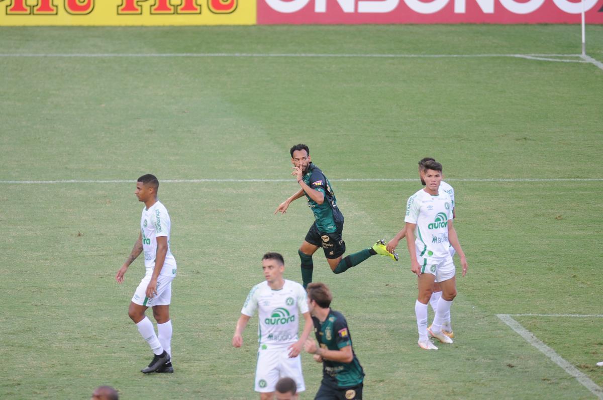 Aproveitando a falha do Coelho, a Chapecoense recuperou a bola com Bruno Silva, que driblou Messias para recolocar os catarinenses à frente do placar: 2 a 1.
