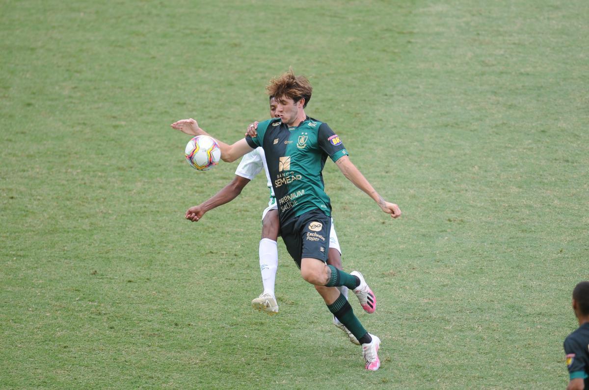 O ritmo de partida seguiu equilibrado durante a maior parte da etapa inicial. O América seguiu buscando forçar o erro adversário, enquanto o Verdão do Oeste trocava passes no seu campo de defesa e esperava por espaços para avançar.