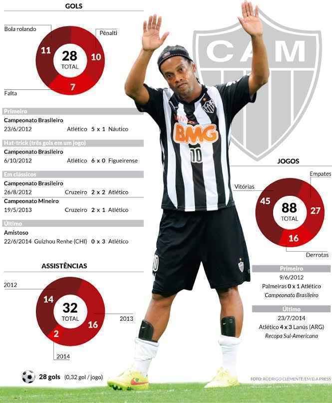 Aos 34 anos, o camisa 10 disputou 88 partidas pelo Atlético e marcou 28 gols. No total, ainda foram 32 assistências. Antes do Galo, ele defendeu Grêmio, Paris Saint-Germain, Barcelona, Milan e Flamengo.