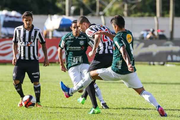 Com a bola rolando, foram poucos lances claros de gols na primeira etapa. O Atlético teve o domínio, mas só chegou com perigo aos 32 minutos, em boa “jogada da base”. Leonan cruzou e Flávio cabeceou firme para a grande defesa de Neguete.