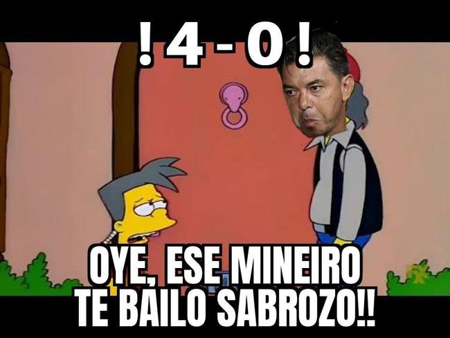 Vitória do Atlético virou motivo de brincadeira nas redes sociais "Oi, este (Atlético) Mineiro fez você dançar gostoso" Vitória do Atlético virou motivo de brincadeira nas redes sociais Vitória do Atlético virou motivo de brincadeira nas redes sociais Vitória do Atlético virou motivo de brincadeira nas redes sociais "Eu só escutava... Gol... Gol... Gol. E a Conmebol não fazia nada" Vitória do Atlético virou motivo de brincadeira nas redes sociais "O único que conseguiu segurar o Hulk foi Gallardo" "O torcedor do River que amanhã tem que ir ao colégio"