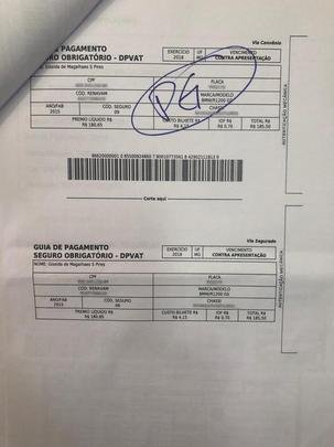 DPVAT R$ 203,41, DPVAT de R$ 185,50 e Licenciamento