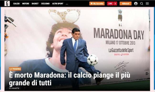 Jornal "A Bola", de Portugal - foto: ReproduçãoO 'Clarín', da Argentina, destaca "incredulidade e comoção nas redes pela morte de Diego" - foto: Reprodução"Está morto Maradona: o futebol chora pela morte do melhor de todos", estampa a Gazzetta dello Sport, da Itália - foto: Reprodução'Portal Infobae', da Argentina La Nación, de Buenos Aires, destaca a parada cardiorrespiratória sofrida pelo craque argentino - foto: ReproduçãoLa Prensa, da Argentina - foto: ReproduçãoLa Voz, da Argentina - foto: Reprodução"Maradona, a morte de um deus", estampa o L'Équipe, da França - foto: ReproduçãoPeriódico 'Marca', da Espanha 'Mundo Deportivo', da Espanha, destaca: "morre dias depois de uma intervenção cirúrgica para tratar de um coágulo no cérebro" - foto: Reprodução'O Jogo', de Portugal 'Olé', da Argentina, fala em 'comoção mundial' 'Página 12', da Argentina 'Sport', da Espanha - foto: Reprodução'The Sun', da Inglaterra, estampa: "Para as mãos de Deus" - foto: Reprodução'Daily Mirror', da Inglaterra, se refere a Maradona como "um dos maiores jogadores do mundo e homem por trás da infame 'Mão de Deus'" - foto: Reprodução