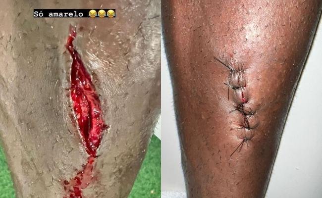 Após o clássico, Nikão publicou uma imagem nas redes sociais mostrando sua canela 'rasgada' com a legenda: "Só amarelo (risos)".