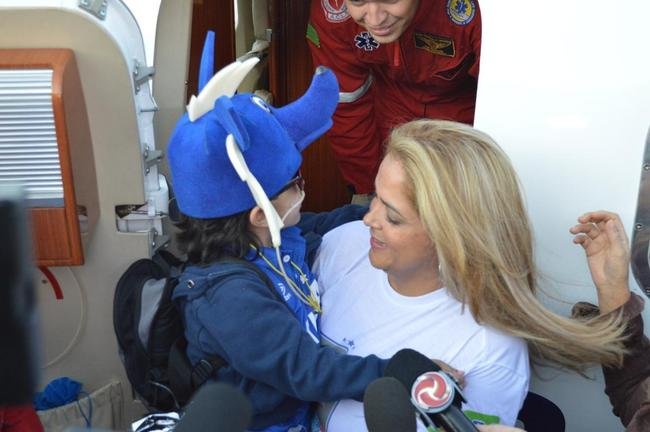 Matheus encheu o pai de beijos antes da viagem e seguiu com a mãe, Gecilene Oliveira, para os Estados Unidos. "A gente conseguiu vencer a primeira de muitas batalhas que temos", disse a mãe, momento antes de embarcar. "Eu agradeço a todos que nos apoiaram e acompanharam a gente até este momento", completou.
