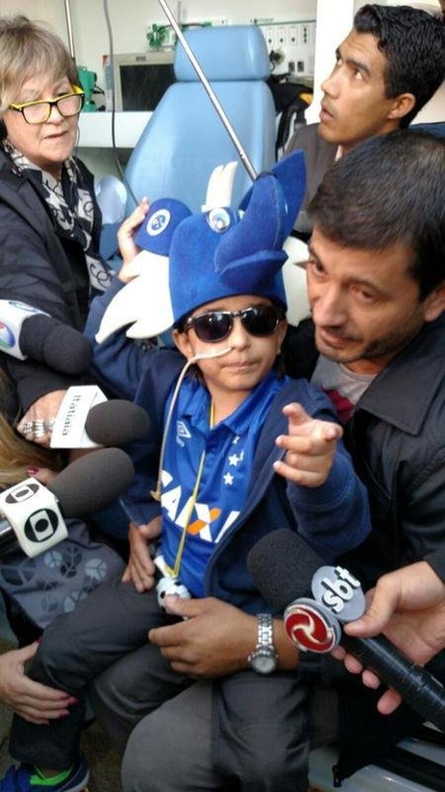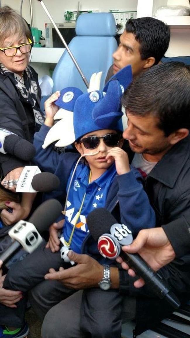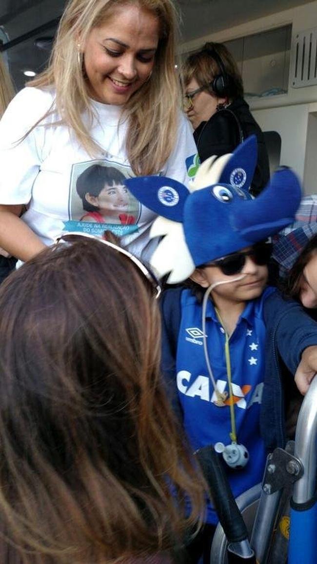 AJUDA DO CRUZEIRO Cruzeirense, Matheus ganhou notoriedade nacional em outubro de 2015, quando entrou em campo com os jogadores do clube na partida contra o Fluminense, pelo Campeonato Brasileiro. Com o Mineirão lotado, ele teve o nome cantado pelos torcedores celestes. Desde então, a causa foi abraçada por jogadores, dirigentes, personalidades de diversas áreas e pessoas comuns, que fizeram doações para a campanha "Juntos pelo Matheus". A ação chegou a arrecadar cerca de R$700 mil, que são utilizados exclusivamente para a melhoria da qualidade de vida do menino. A família precisa prestar contas de todos os saques à Justiça.