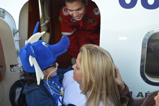 Matheus viaja em um avião UTI, com toda a estrutura médica necessária para que ele chegue bem nos Estados Unidos. Antes de entrar no avião, ele deu tchau a todos que acompanhavam sua saída e, com muito bom humor, agradeceu o apoio. “Partiu Miami”, brincou o garoto mais uma vez.