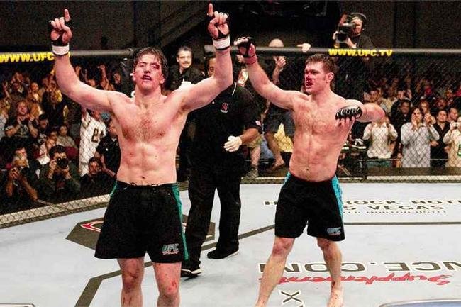 Stephan Bonnar (esquerda) e Forrest Griffin comemoram após a luta, mas o segundo terminou duelo vencedor