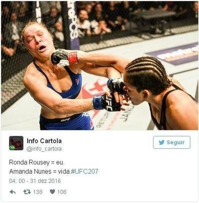 Assim como a campeã do UFC, Amanda Nunes, a internet não perdoa. Após a vitória por nocaute sobre Ronda Rousey, neste sábado, em Las Vegas, a brasileira aproveitou para entrar na onda da rede mundial de computadores e também tirou sarro da americana.